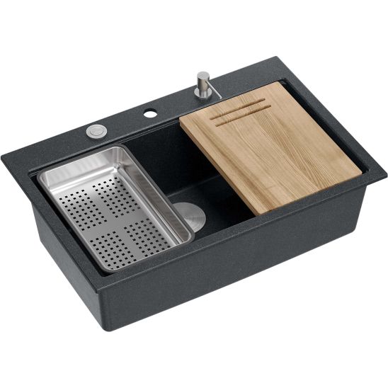 Marc Workstation GraniteQ – to je kolekce pro uživatele, kteří očekávají od dřezu rozsáhlou funkčnost. V případě tohoto modelu díky použití velmi velké 61litrové komory pohodlně opláchneme a umyjeme i velké plechy z trouby.