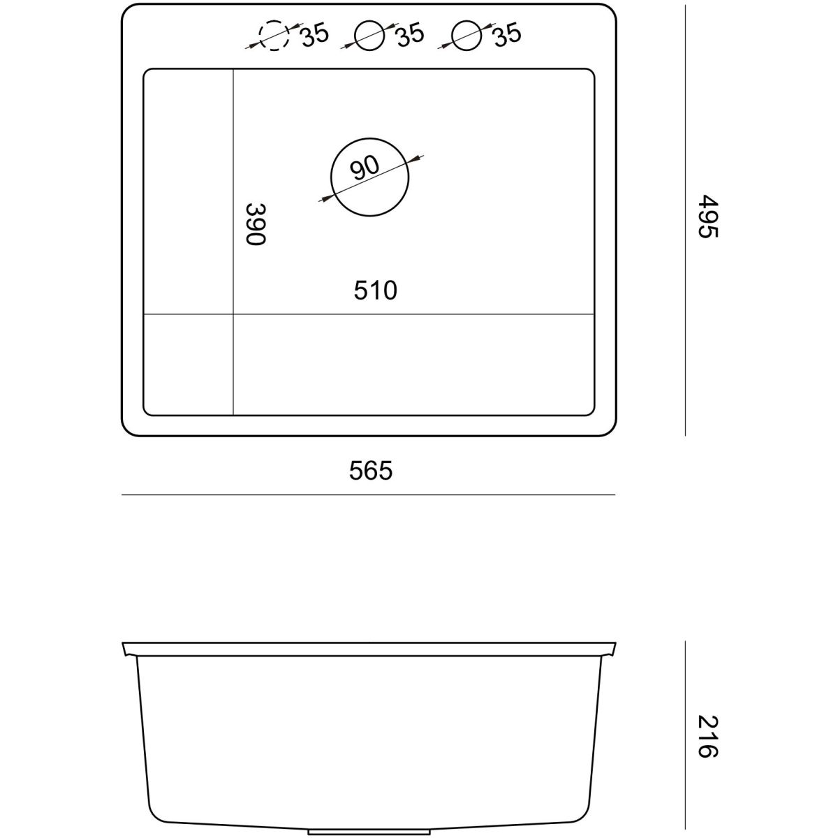 Quadron Morgan dřez graniteq 56.5x49.5 cm šedá/grafitová/onyx HB8304U5-FM_C1_P2O