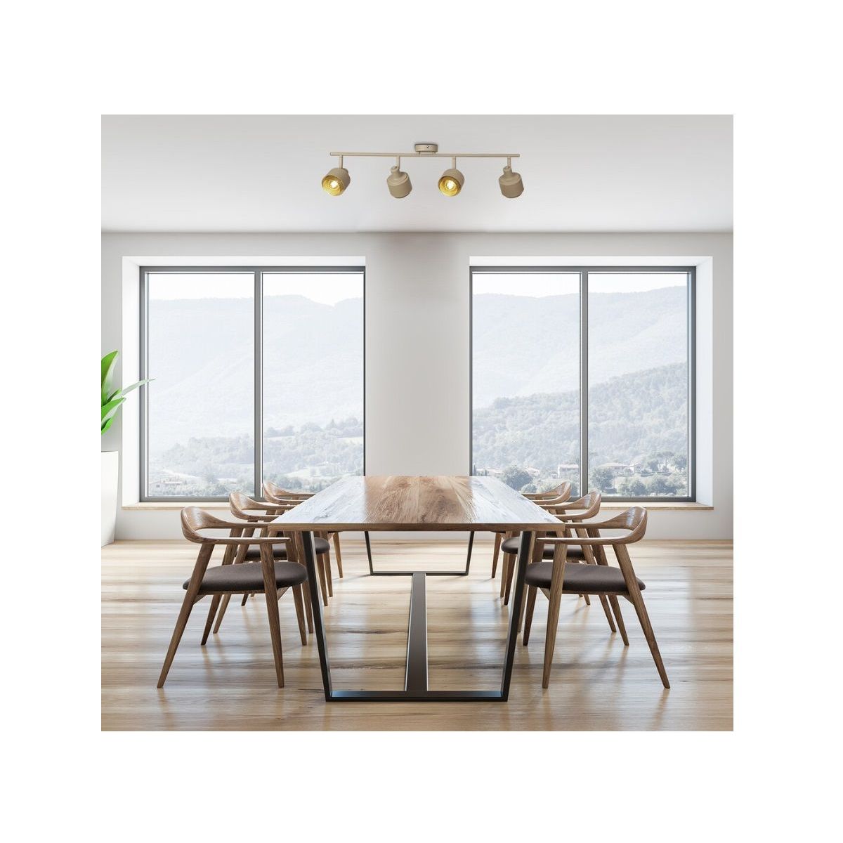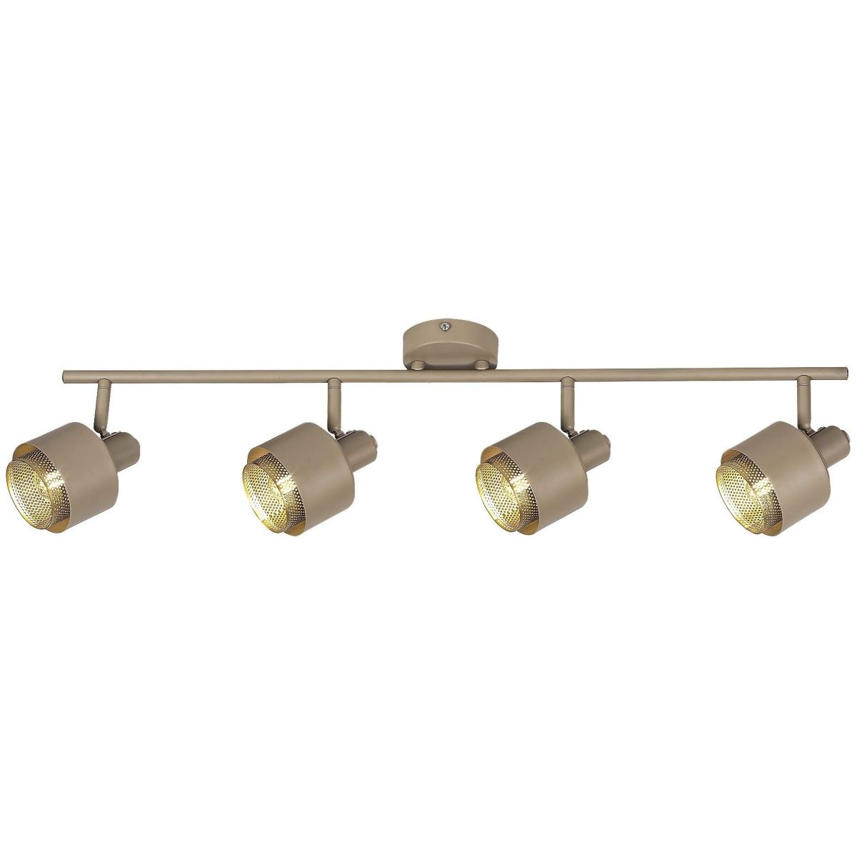 Čtyřnásobný reflektor Fedora v moderním stylu bude skvělým doplňkem vašeho obývacího pokoje nebo ložnice. Toto celokovové svítidlo ve světle hnědých a zlatých barvách je připevněno ke stropu pomocí kulaté ozdobné základny. Jeho zvláštností jsou perforovaná vnitřní válcová stínidla ve zlaté barvě, která přesahují světle hnědá vnější stínidla.
