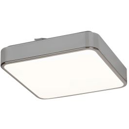 Čtvercový tvar lampy Wolimir, která se skládá z pochromovaného kovového kování a bílého akrylového stínidla, je zjemněn zaoblenými rohy.