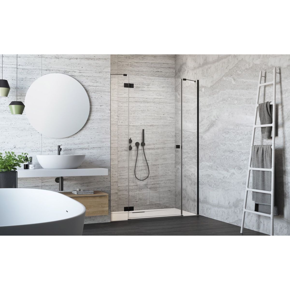Radaway Essenza New Black DWJS sprchové dveře 50.5 cm sklopné černá matný/průhledné sklo 1385030-54-01L