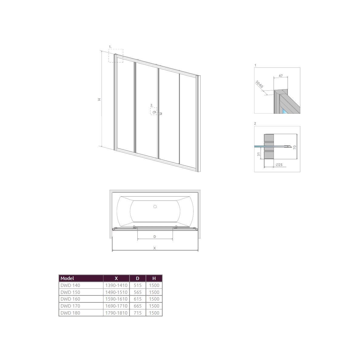 Radaway Vesta DWD vanová zástěna 160 cm čtyřdílný 203160-01