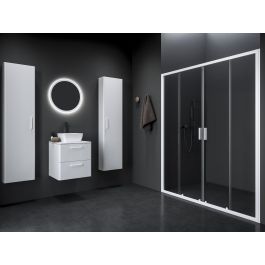 Čtyřdílné sprchové dveře Blix II v bílé matné barvě s výplní z čirého skla s ochranou Ravak AntiCalc®. Posuvný systém otevírání.