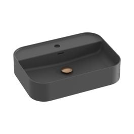 Tenkostěnné keramické umyvadlo Ceramic Slim určené k montáži na desku nebo skříňku, s přepadem. Barva antracitová.