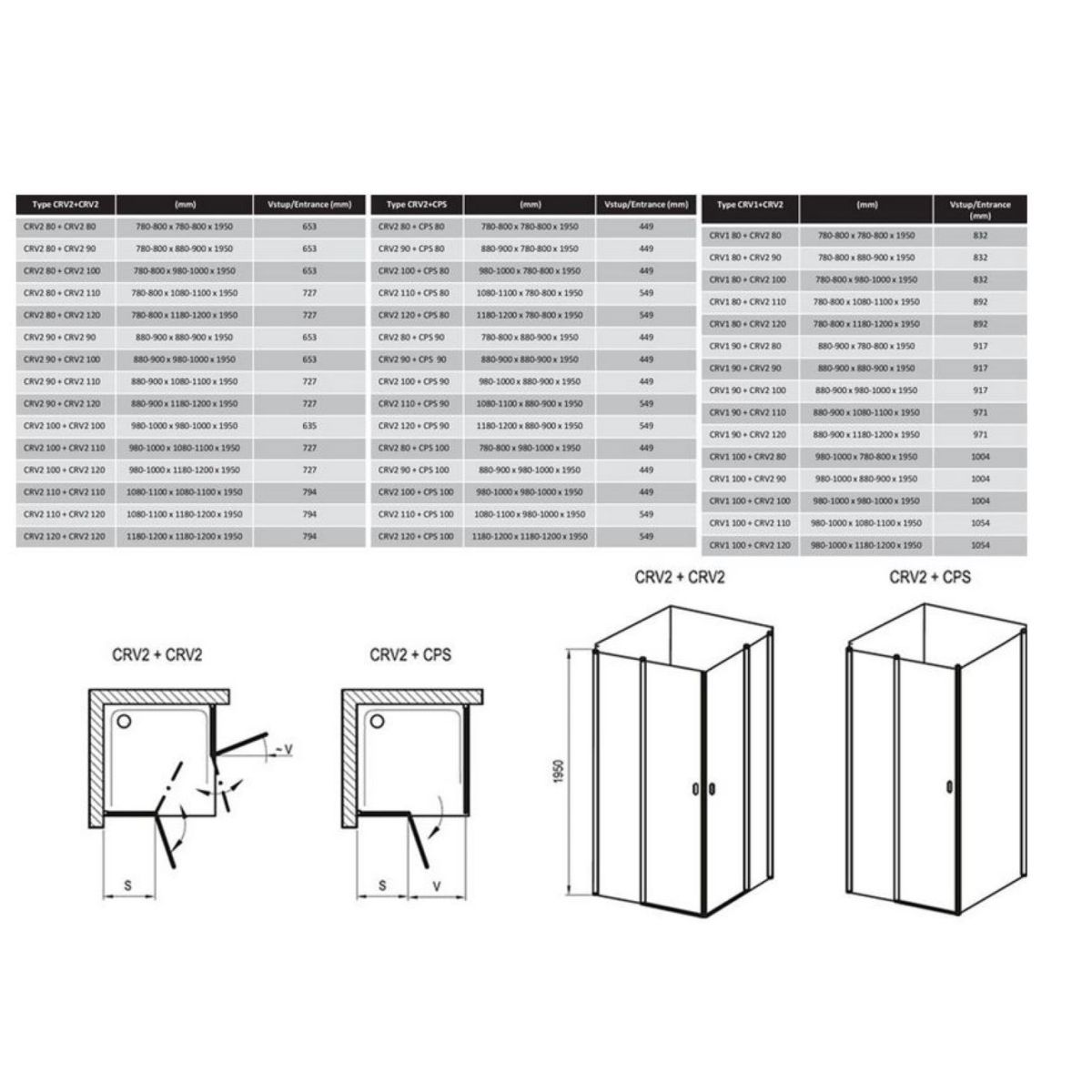 Cena se vztahuje na jeden kus dveří CRV2. Pro sestavení sprchové kabiny je třeba objednat 2 kusy.