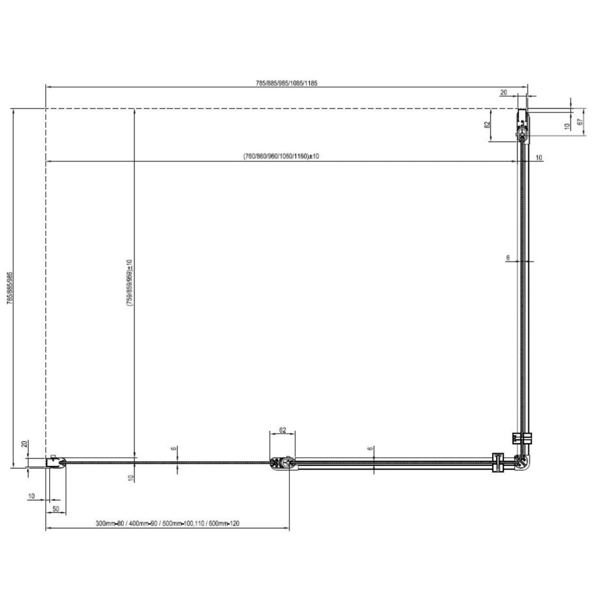 Drobné stavební nerovnosti? Nebojte se – Chrome má řešení. Jeho profily umožňují nastavení kabiny na každé straně až o 10 milimetrů. Můžete si také zakoupit prodloužený nastavitelný profil a rozšířit sprchovou kabinu o dalších 20 milimetrů.