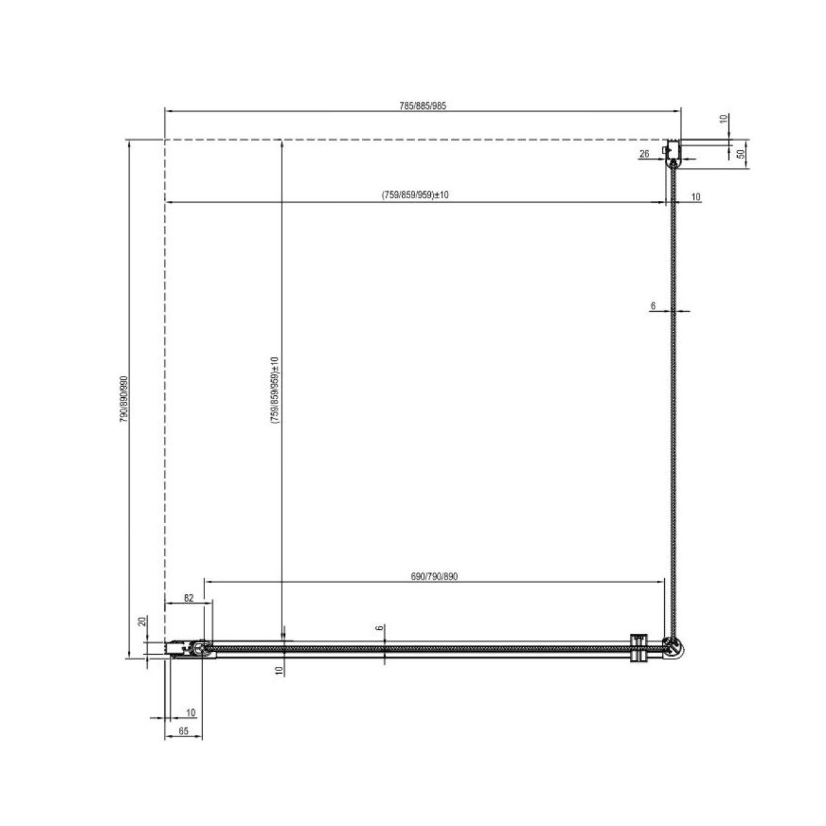 - k montáži pouze s druhou částí dveří CRV1 (80,90,100), CRV2 (80,90,100,110,120) nebo pevnou stěnou CPS (80,90,100)