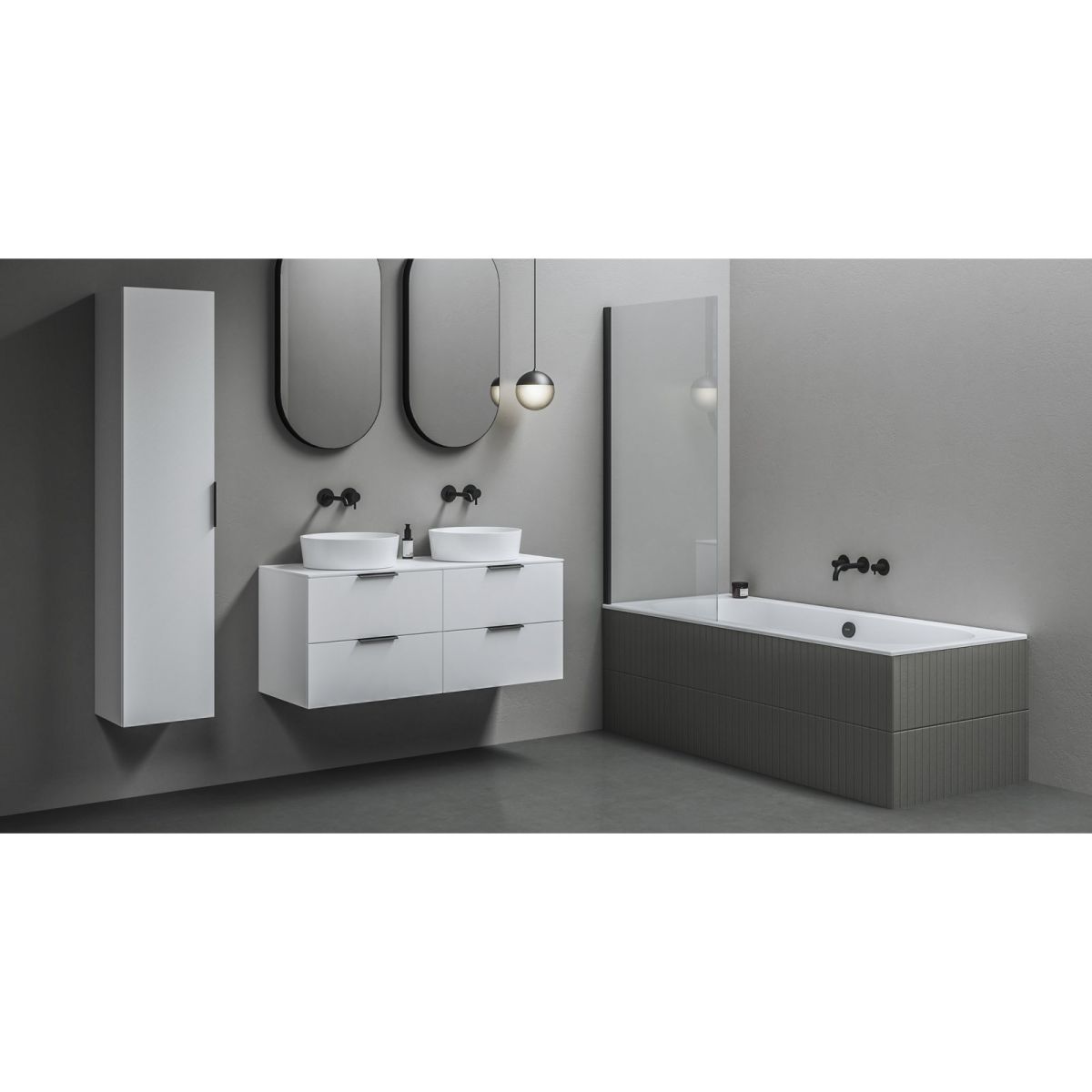 Aby vás v koupelně nic nerušilo, vybavili jsme dvířka vysokých skříněk tlumiči zavírání a zásuvky volně přístupným systémem automatického zavírání.