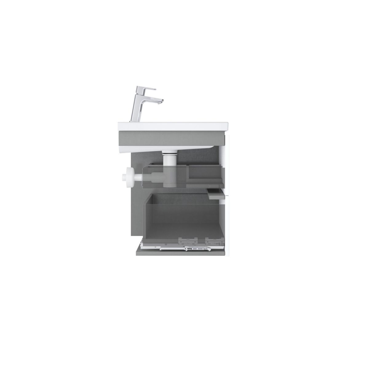 Interiér skříňky je v grafitové barvě. Dvě zásuvky se systémem tichého dovírání poskytnou dostatek úložného prostoru. Skříňka má předvrtané otvory pro úchytky, které nejsou součástí skříňky a je nutné je dokoupit zvlášť (2 ks). Na výběr jsou tři barvy: lesklý chrom, černá nebo bílá. Skříňka je určena pro umyvadlo Comfort 80 bez přepadu. Skříňku lze také kombinovat s deskou Comfort 80 v bílé barvě a umyvadlem na desku (např. řada Uni / Uni Slim). Skříňka se dodává již smontovaná s montážní sadou (šrouby, závěsy, hmoždinky). Určeno k montáži na stěnu.