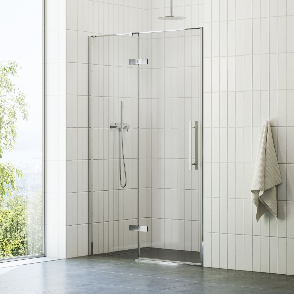 Dvoudílné sprchové dveře Cool! V chromovém provedení s výplní z čirého skla s ochrannou vrstvou Ravak AntiCalc®. Výklopný systém otevírání. Univerzální výrobek, pravé a levé provedení není k dispozici.