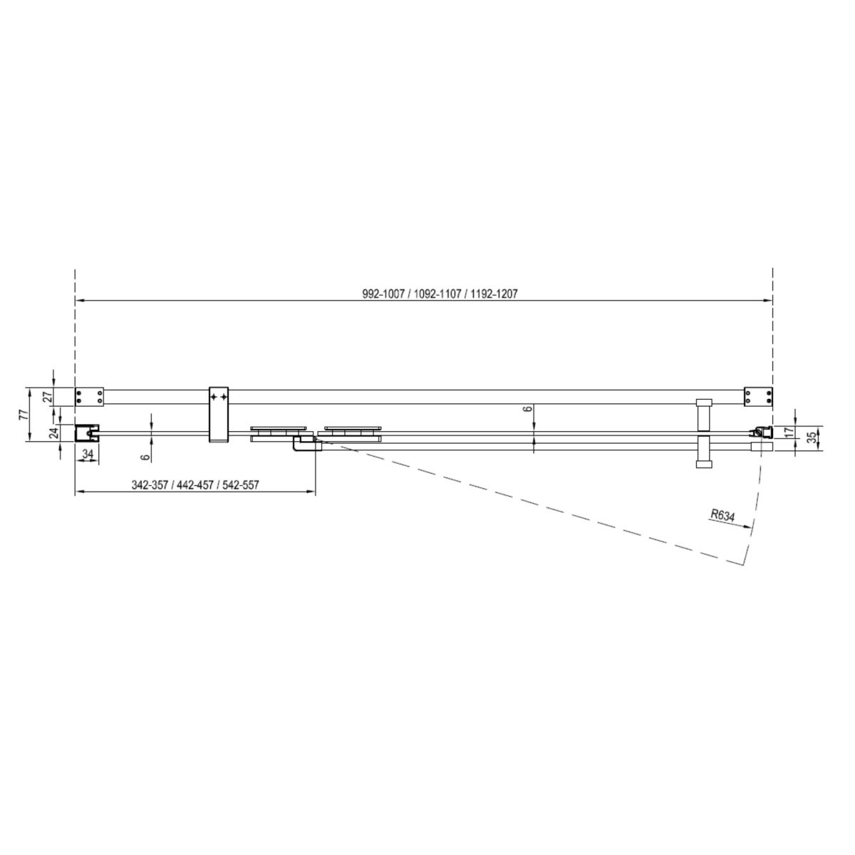 - montážní rozměry: 100 cm: rozměry: 992-1007 mm