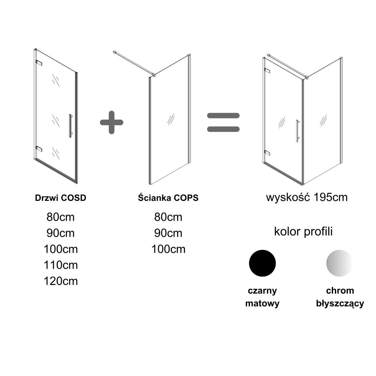 - dveře lze kombinovat s pevnou stěnou COPS (80,90,100) a vytvořit tak sprchový kout, stěnu je třeba zakoupit zvlášť!