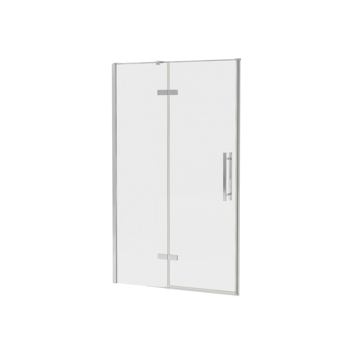 Dvoudílné sprchové dveře Cool! V matném bílém provedení s výplní z čirého skla s ochrannou vrstvou Ravak AntiCalc®. Systém otevírání na závěsech. Univerzální produkt, nemá pravou a levou verzi.