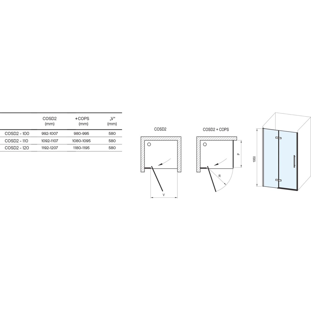- dveře lze spojit se stálou stěnou COPS (80,90,100) a vytvořit tak sprchový kout, stěnu je nutné zakoupit samostatně!