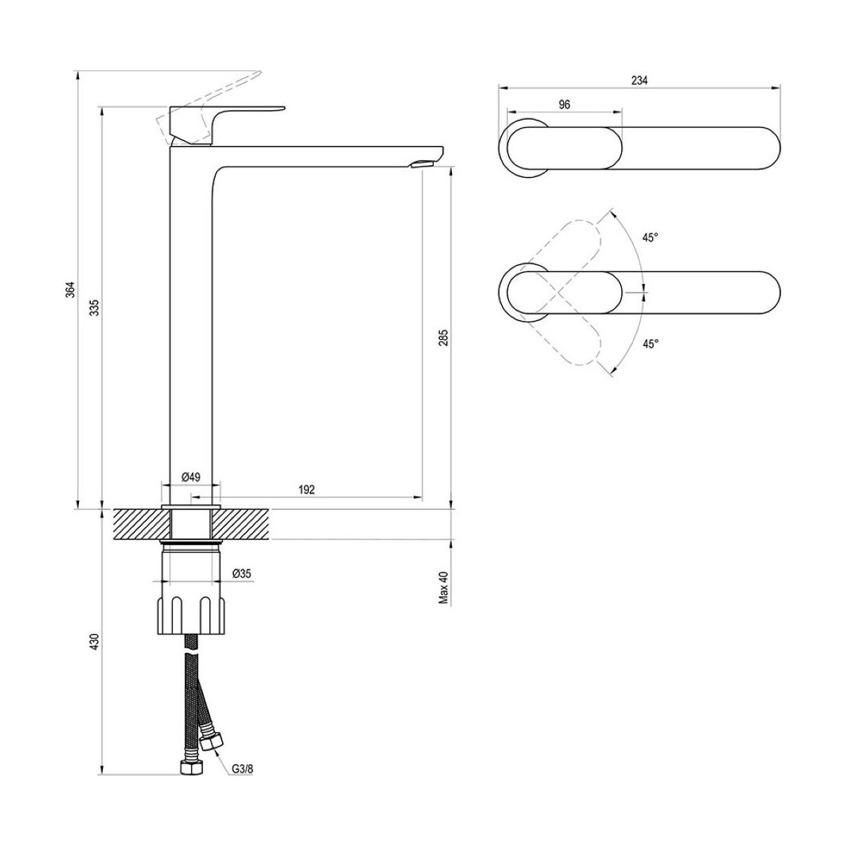 - připojovací hadičky: flexibilní 700 mm, průměr DN6, G3/8