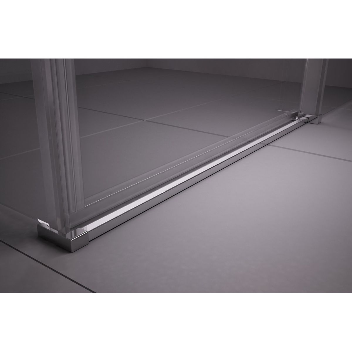 Spodní profil zde nenajdete. Prahová lišta je tak nízká, že o ni nelze zakopnout. Sprcha tak zdůrazňuje také podlahové dlaždice.