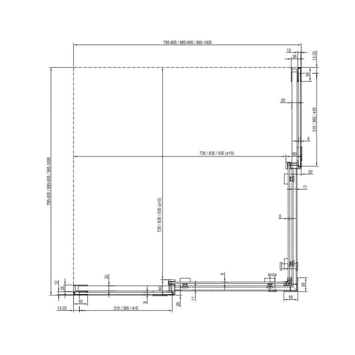 Kabinová sprcha se skládá ze dvou pevných a dvou pohyblivých částí, které tvoří posuvné dveře. Montáž v obloženém rohu koupelny přímo na podlahu s vestavěným lineárním odtokem nebo odtokovou mřížkou.