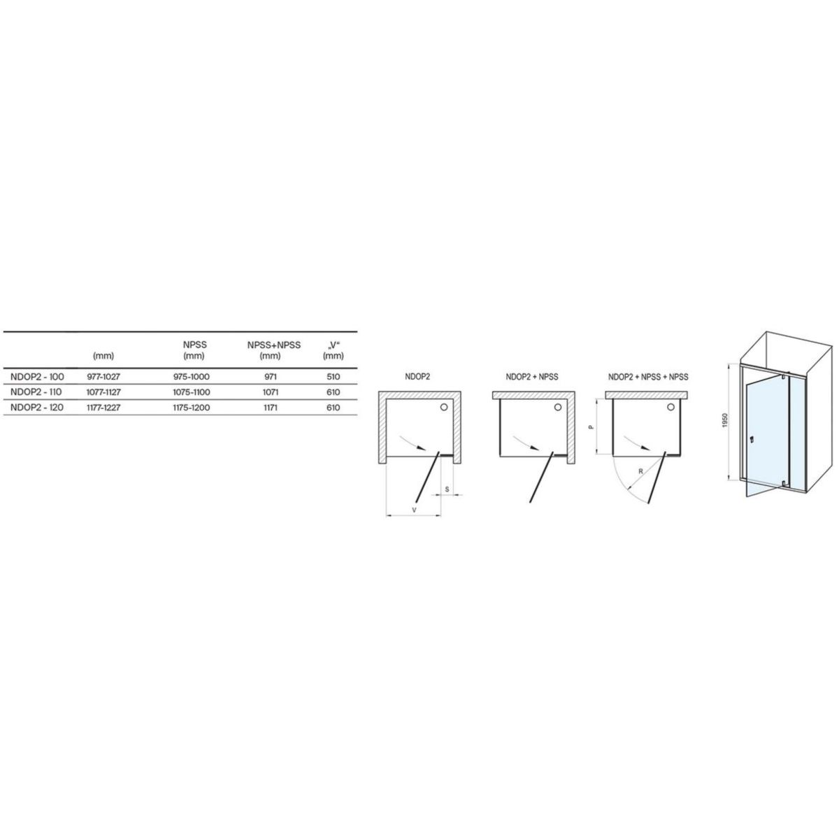 Produkt se skládá z jednoho jednoduchého pevného a jednoho otočného prvku, které tvoří dveře. Otočením produktu o 180° získáte levou nebo pravou verzi otevírání dveří. Montáž do výklenku nebo obloženého rohu koupelny v kombinaci s pevnou stěnou NPSS na vaničce Ravak nebo přímo na podlaze s vestavěným lineárním odtokem nebo odtokovou mřížkou.