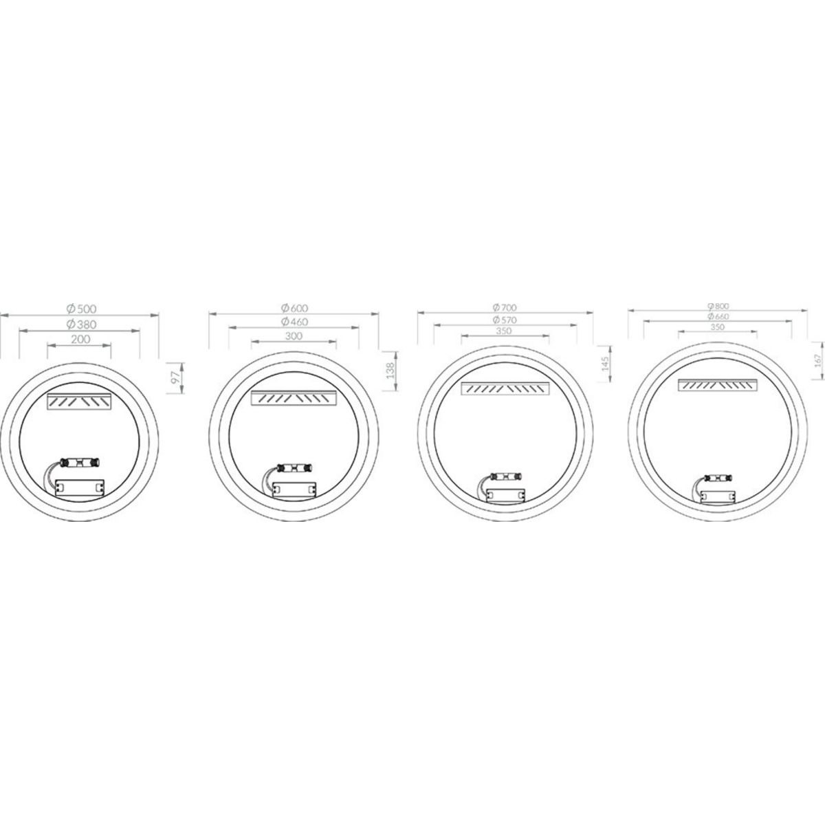 Zrcadlo je vybaveno bočním LED osvětlením a je připraveno k připojení k napájecímu napětí 230 V. Montuje se zavěšením na zeď.