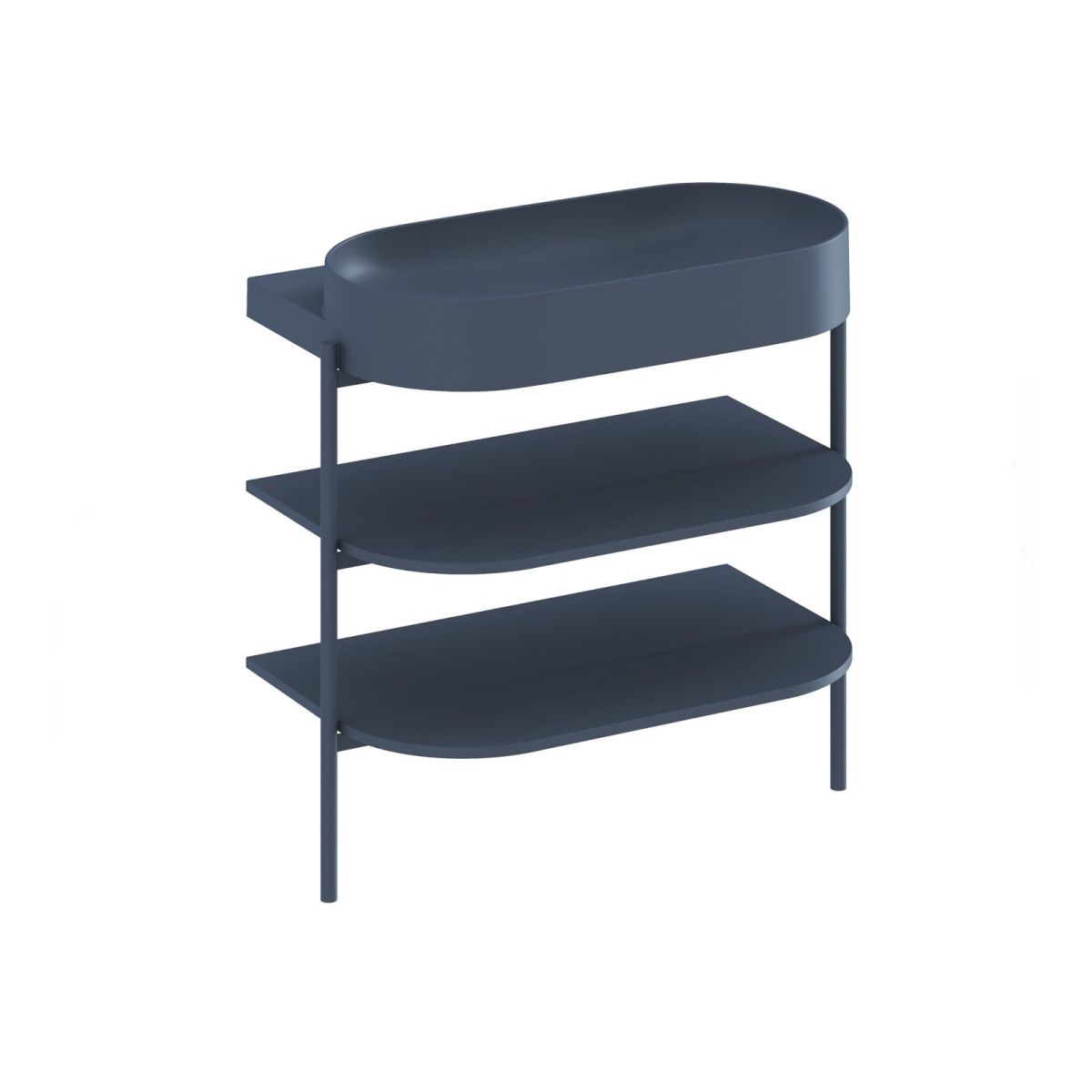 Stojící kovová konstrukce s policemi CS Yard 80 pro montáž umyvadla Yard 80, v tmavě modré barvě.
