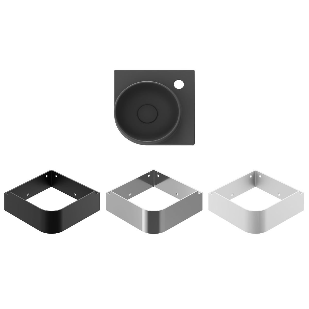 Rohové keramické umyvadlo Yard s tenkými stěnami určené k montáži na konzolu Yard nebo na desku, bez přepadu. Barva antracitová. S otvorem pro baterii.