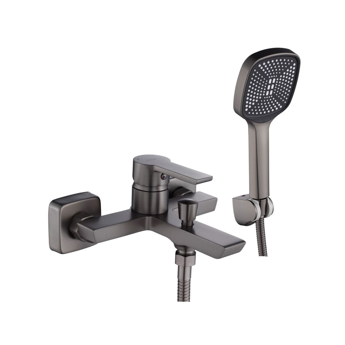 Vana baterie v elegantním odstínu broušeného titanu, navržená pro moderní koupelny. Její minimalistický design, solidní provedení a praktická sprchová souprava učiní každodenní koupání skutečným potěšením. Díky preciznímu povrchovému zpracování je baterie odolná proti poškrábání a snadno se čistí. Ergonomická rukojeť sprchy a pružný hadice zajišťují plnou volnost pohybu při sprchování.