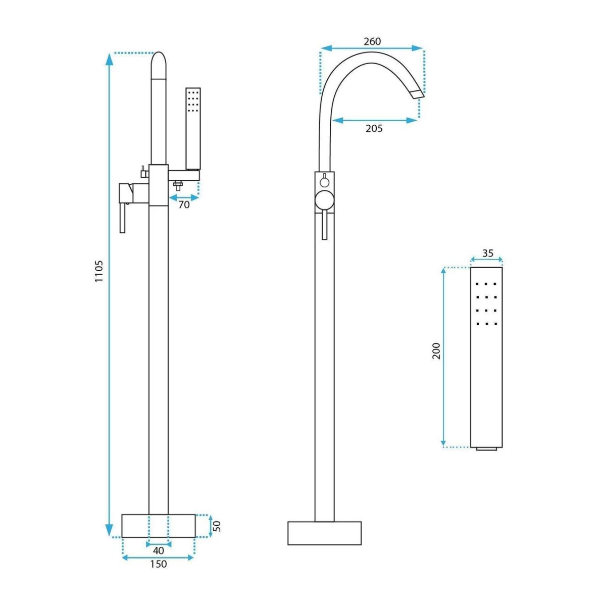 Volně stojící vanová baterie Lungo v elegantním matném odstínu černé barvy je ideální volbou pro ty, kteří hledají funkční a designové řešení pro moderní koupelny. Díky minimalistickému designu a vysoké kvalitě zpracování se perfektně hodí k volně stojícím vanám a podtrhuje styl celého interiéru. Baterie je vyrobena z mosazi a kovu, což zajišťuje její odolnost a odolnost proti korozi. Pro další ochranu povrchu a dosažení jednotné, elegantní barvy byla baterie pokryta pokročilou elektrolytickou vrstvou. Díky této technologii se vrstva vyznačuje vysokou odolností proti poškrábání, oděru a vlhkosti. Model Lungo je vybaven funkčním přepínačem, který umožňuje snadné přepínání proudu vody mezi výtokem a sprchovou hlavicí. Součástí sady je praktická ruční sprcha na ohebné hadici, která zajišťuje pohodlí při každodenním používání. Keramická hlavice a moderní směšovací mechanismus zaručují přesnou regulaci teploty a síly proudu.