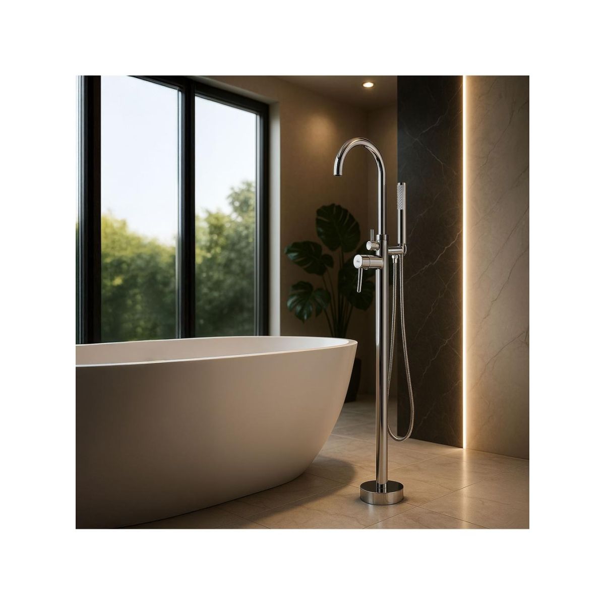 Volně stojící vanová baterie Lungo v elegantní barvě lesklého chromu je vynikající volbou pro ty, kteří hledají funkční a designové řešení pro moderní koupelny. Díky minimalistickému tvaru a vysoké kvalitě zpracování se perfektně hodí k volně stojícím vanám a podtrhuje styl celého interiéru. Baterie je vyrobena z mosazi a kovu, což zajišťuje její odolnost a odolnost proti korozi. Pro dodatečnou ochranu povrchu a dosažení jednotné, elegantní barvy byla baterie pokryta pokročilou elektrolytickou vrstvou. Díky této technologii se vrstva vyznačuje vysokou odolností proti poškrábání, oděru a vlhkosti. Model Lungo je vybaven funkčním přepínačem, který umožňuje snadné přepínání proudu vody mezi výtokem a sprchovou hlavicí. Součástí sady je praktická ruční sprcha na ohebné hadici, která zajišťuje pohodlí při každodenním používání. Keramická hlavice a moderní směšovací mechanismus zaručují přesnou regulaci teploty a síly proudu.