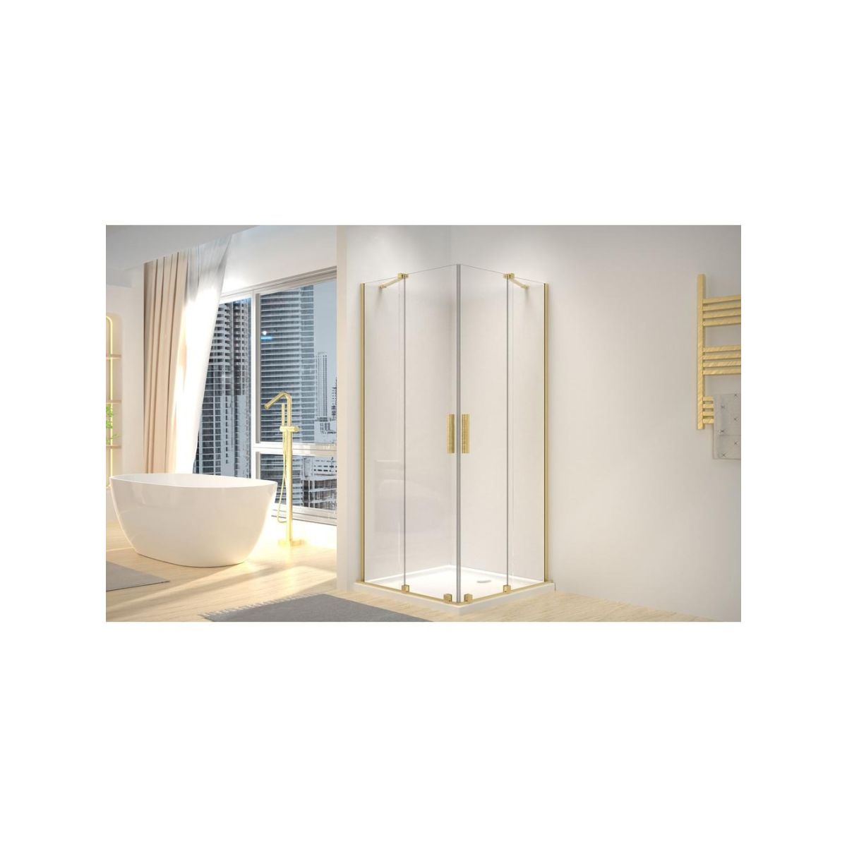 Sprchový kout Montana Double se dvěma posuvnými dveřmi a kartáčovaným zlatým povrchem je elegantním a moderním doplňkem každé koupelny. Kombinace průhledného skla a jemných zlatých akcentů dodává luxus a sofistikovanost. Odolná konstrukce a stylové detaily z ní dělají ideální volbu pro interiéry s moderním provedením, které zajišťují pohodlí při používání a vysokou estetiku. Tento produkt má povrchovou úpravu Easy Clean, která usnadňuje jeho čištění.