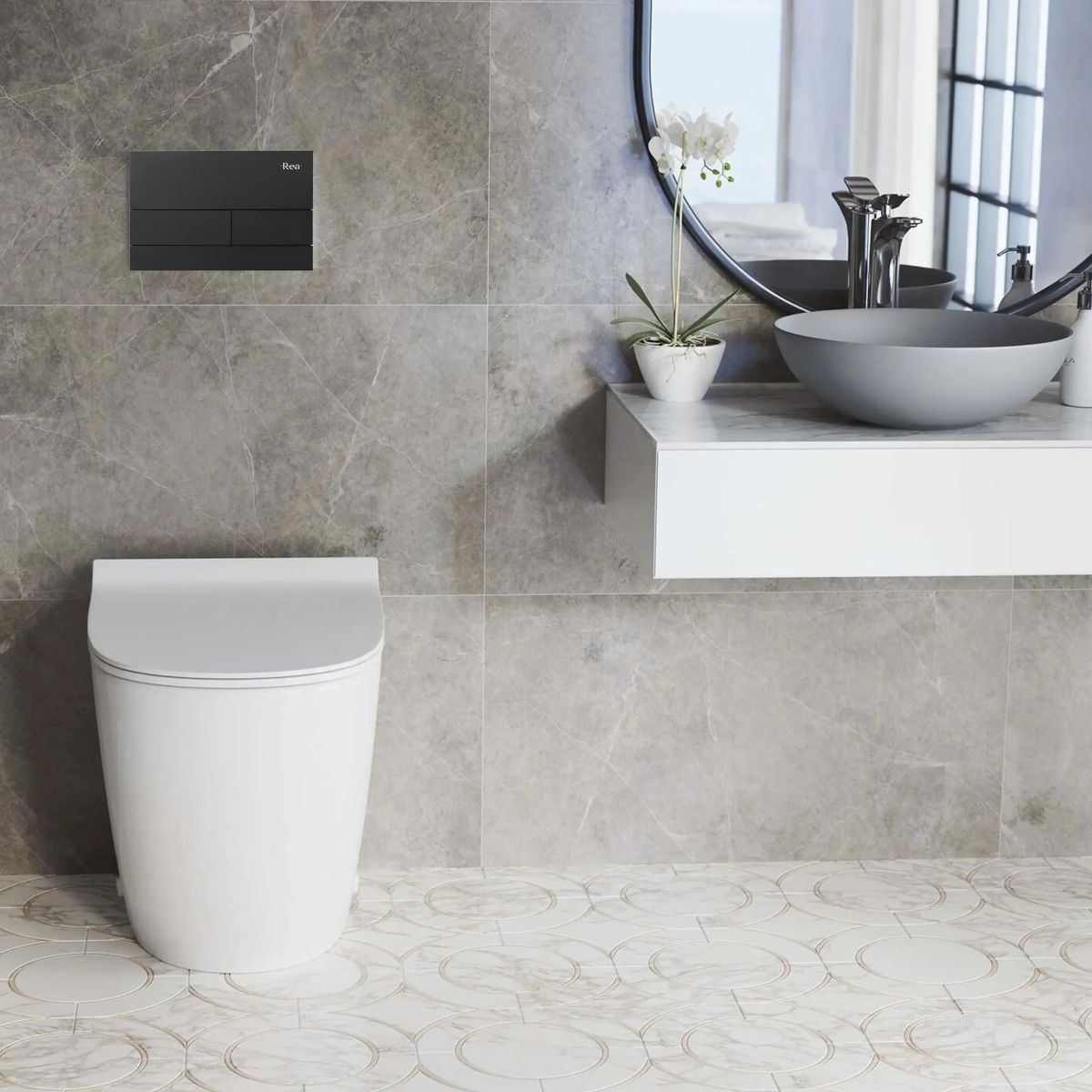 Rea T Steel splachovací tlačítko pro WC černá REA-E0056