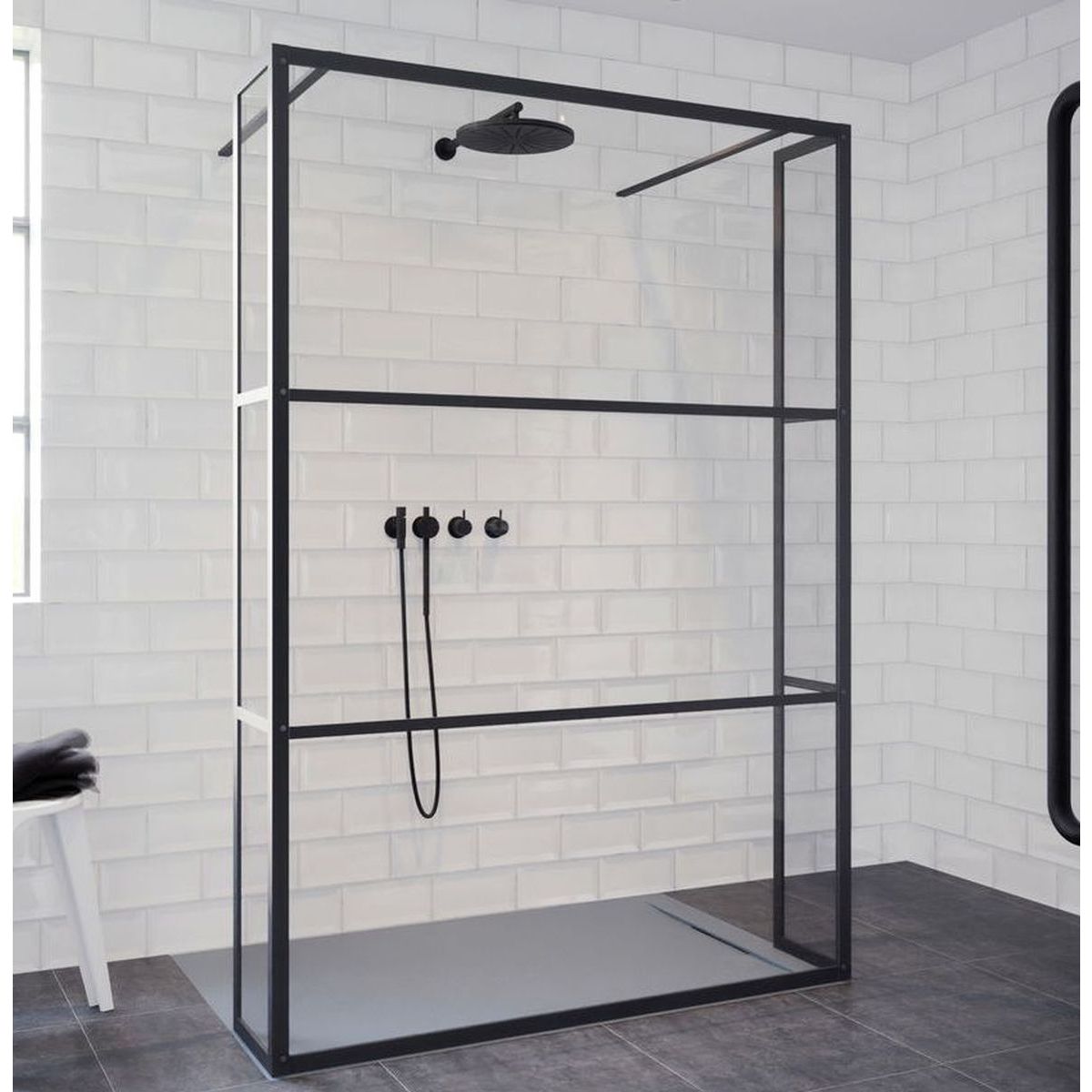 Riho Grid sprchový kout 90x30 cm černá matný/vzorované sklo G004030121