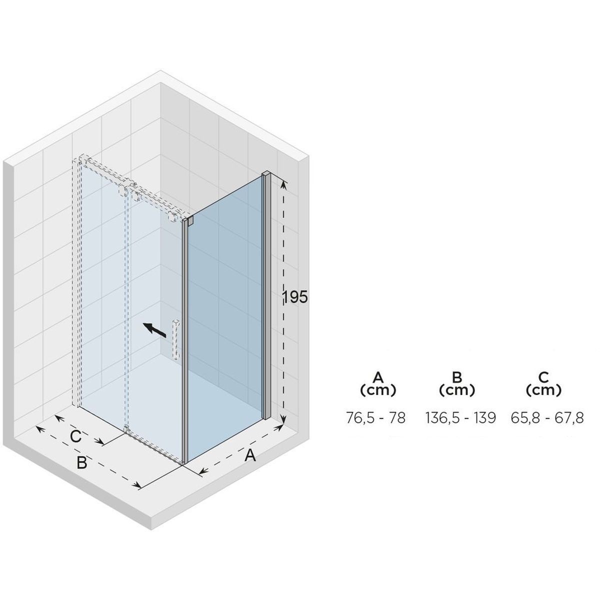 - skutečný rozměr dveří (B): 136,5 - 139 cm
