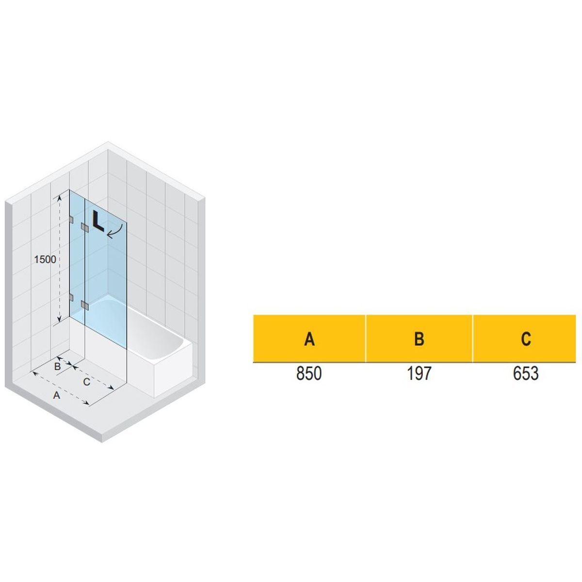 Riho Scandic vanová zástěna 85 cm dvoudílný chrom lesk/čiré sklo G001152120