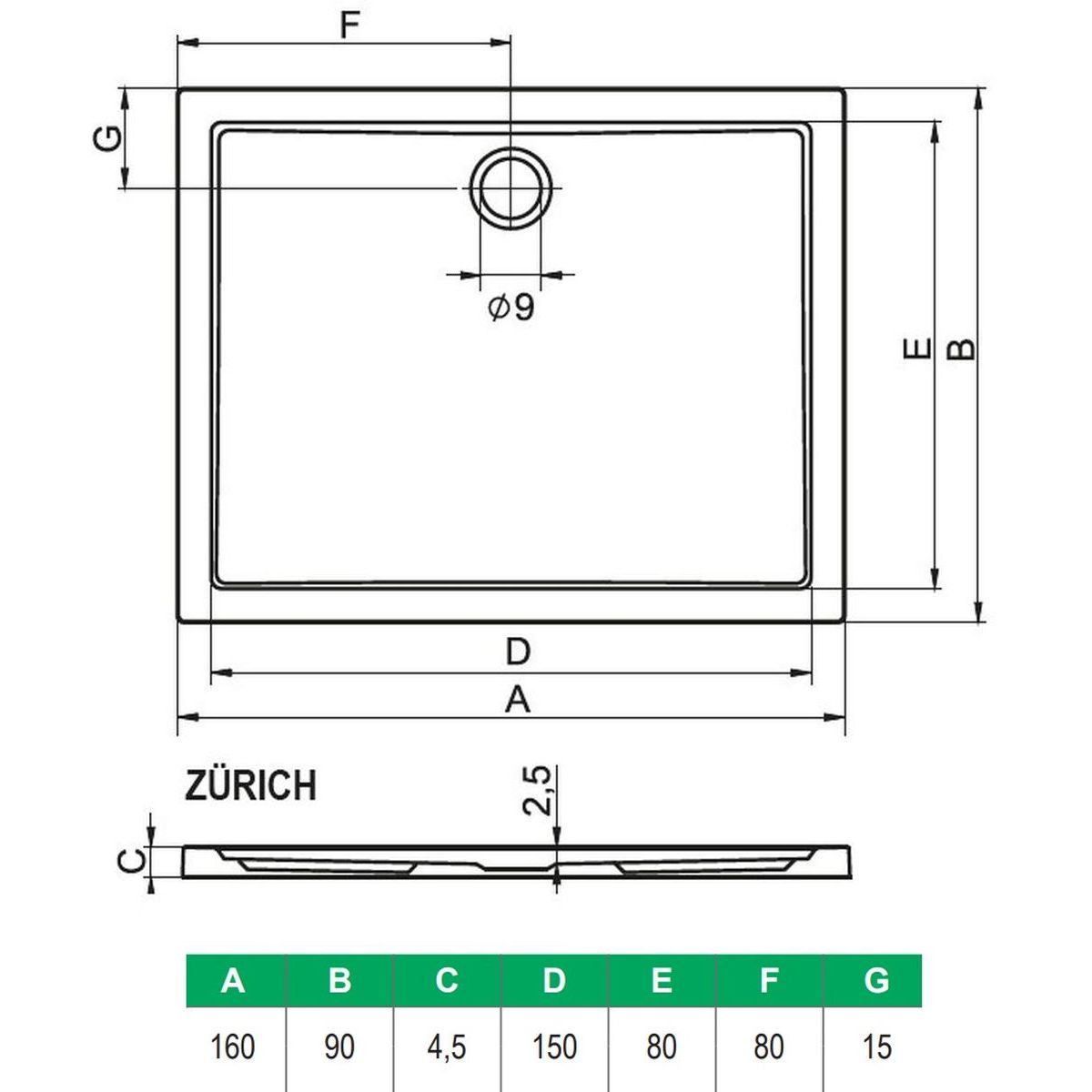Riho Zurich obdélníková sprchová vanička 160x90 cm bílá D001011005