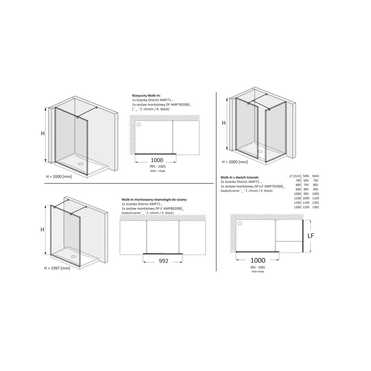 - dvě pochozí stěny: dvě skla AMP71(...) a montážní sada DF+LF ve zvolené barvě