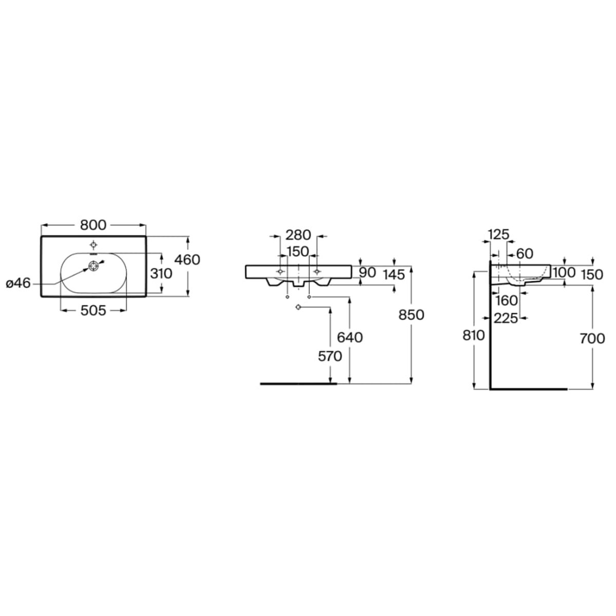 Roca Meridian umyvadlo 80x46 cm obdélníkový klasický-nábytkový černá A327745080