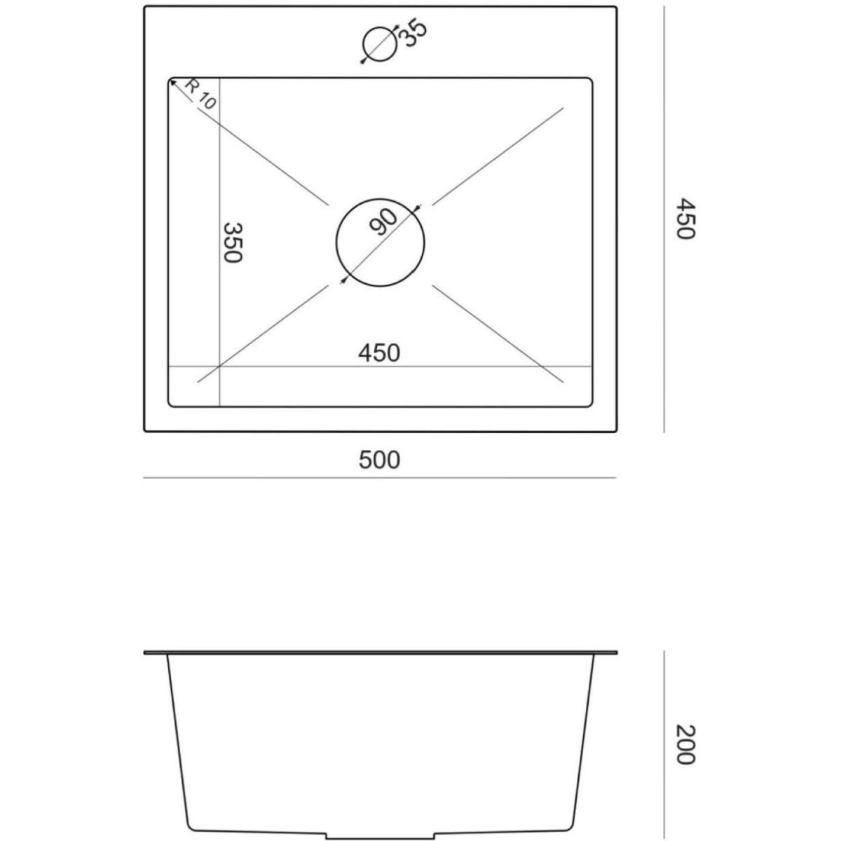 Ruvetti Look ocelový dřez 50x45 cm ocel 5003L_BS50_W