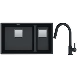 Franke Lina Pull-Out - stojánková kuchyňská baterie s vytahovací výpustí v černé matné barvě (model 115.0626.053) - kombinuje moderní design s praktickými řešeními. Její stylové matné černé provedení přináší do kuchyně elegantní, výrazný akcent a dokonale ladí s různými styly interiérů.