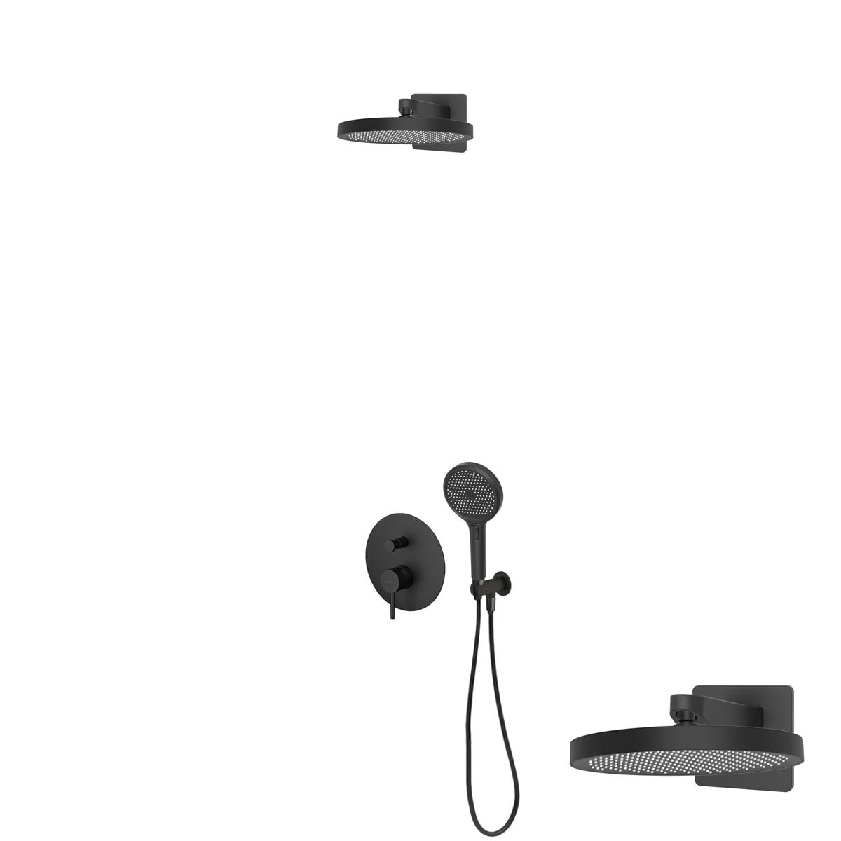 V sadě: baterie s přepínačem, Hlavové sprchy -, Sprchová hlavice, sprchová hadice, sprchové rameno, koutové přípojky