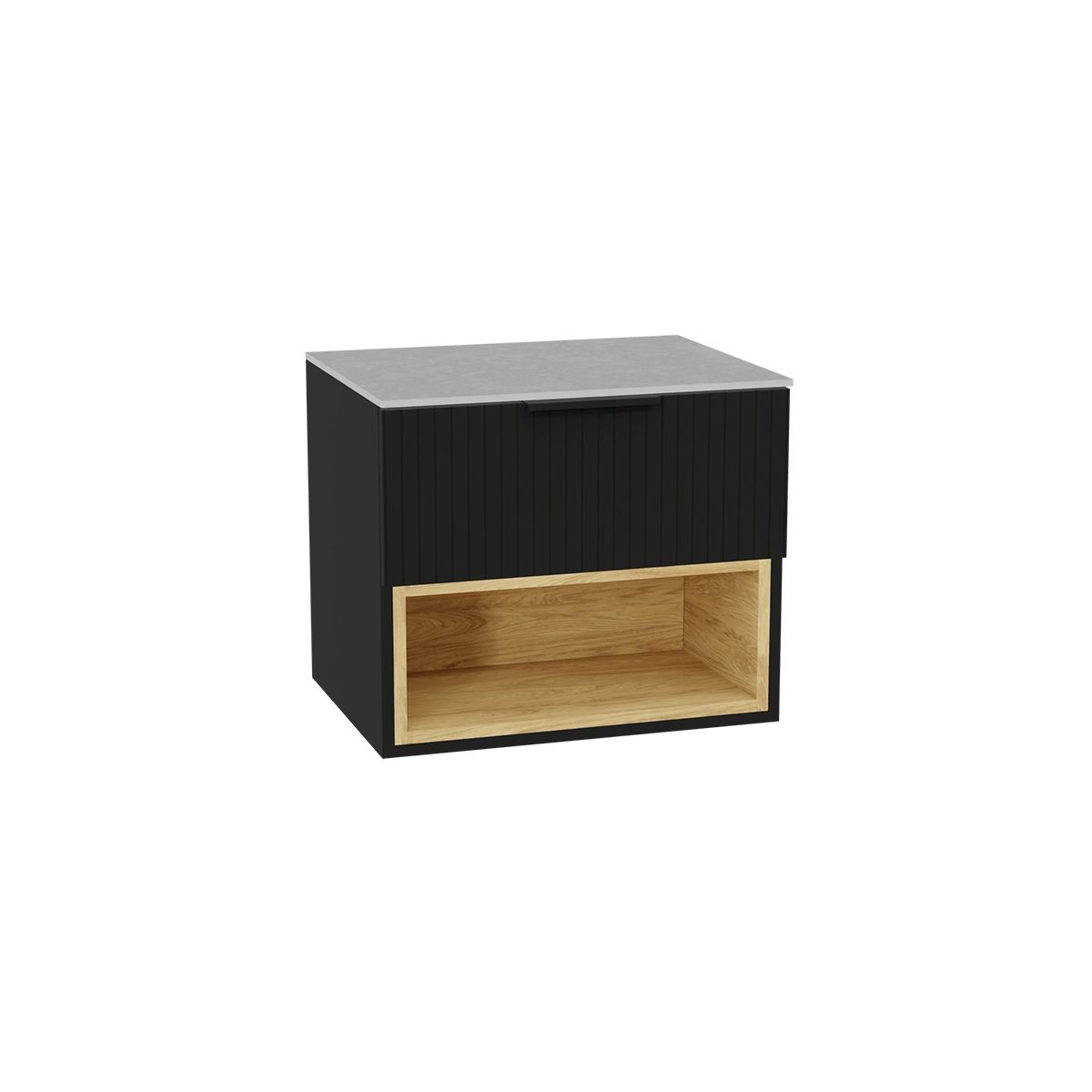 Skříňková skříňka Tuto 2.0 60 cm, 1 zásuvka, černý mat/dub.