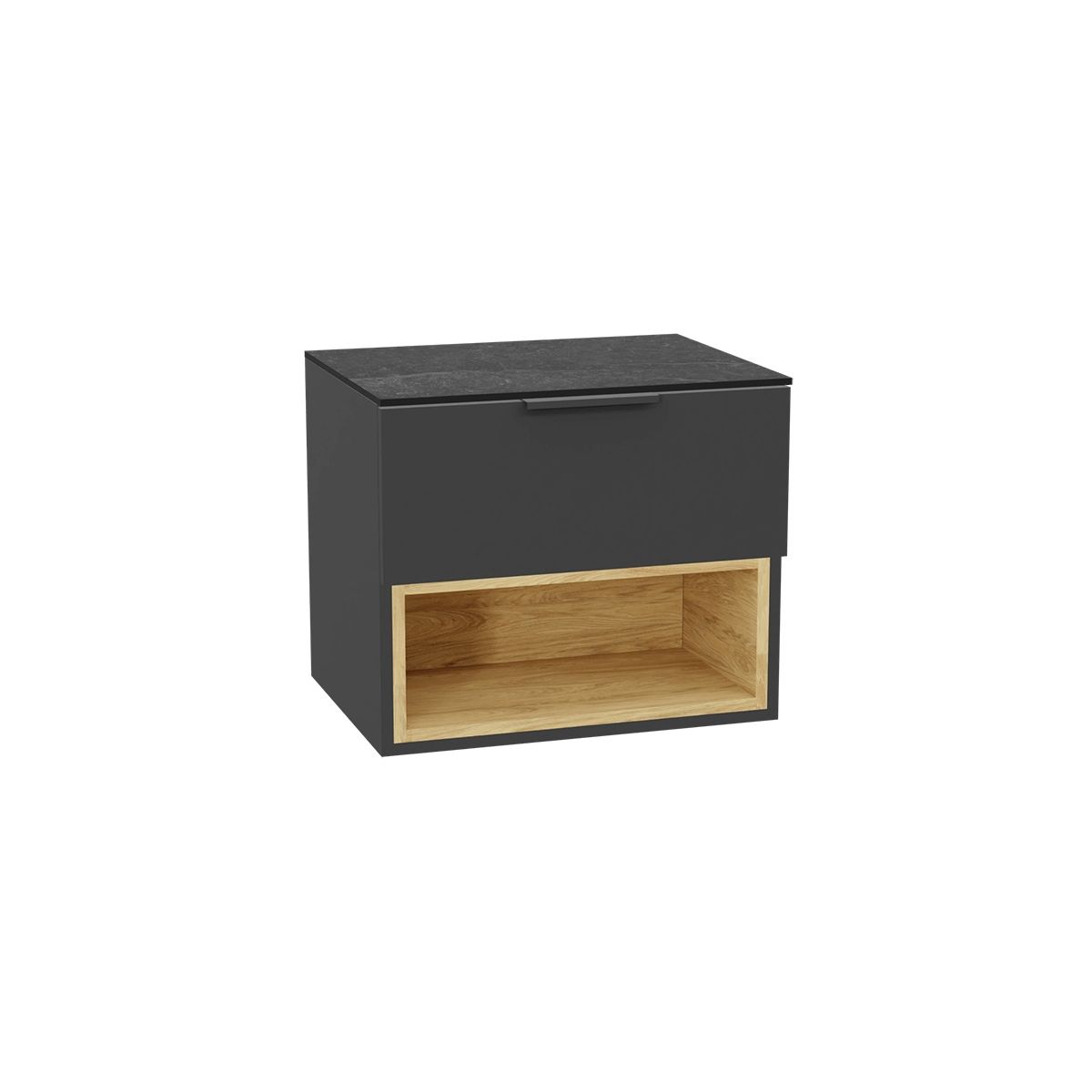 Moderní umyvadlová skříňka Tuto 2.0 s jednou objemnou zásuvkou a praktickým otevřeným úložným prostorem. Čela jsou dodávána včetně úchytek. Všechna čela jsou v barvě odpovídající korpusu skříňky. Skříňka dokonale kombinuje funkčnost s moderním designem. Různé konfigurace umožňují, aby tento kus nábytku odpovídal individuálnímu stylu a potřebám každé koupelny. Čela zásuvek se dodávají včetně úchytek. Skříňka a zásuvka se dodávají kompletně smontované. Čela a horní deska/umyvadlo se montují samostatně.