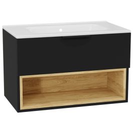 Moderní umyvadlová skříňka Tuto 2.0 s jednou objemnou zásuvkou a praktickým otevřeným úložným prostorem. Čela jsou dodávána včetně úchytek. Všechna čela jsou v barvě odpovídající korpusu skříňky. Skříňka dokonale kombinuje funkčnost s moderním designem. Různé konfigurace umožňují přizpůsobit nábytek individuálnímu stylu a potřebám každé koupelny. Čela zásuvek se dodávají včetně úchytek. Skříňka a zásuvka se dodávají kompletně smontované. Čela a horní deska/umyvadlo se montují samostatně.