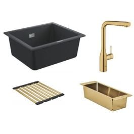 Hledáte exkluzivní dřezovou baterii do své kuchyně? Grohe Essence bude perfektní volbou! Její zajímavý tvar je založen na válcové linii těla, která se postupně zužuje směrem nahoru a přechází v elegantní výpusť ve tvaru písmene L. Pro další zdůraznění tohoto jedinečného designu je obalena zlatým matným povrchem Cool Sunrise, který zaujme svou odolností proti poškození a snadným čištěním. Podobná péče byla věnována i keramické kartuši Grohe SilkMove, která umožňuje rychlé a snadné nastavení průtoku vody i po 20 letech spolehlivého používání. Baterie je také vybavena vysokou 360° otočnou výpustí s výsuvnou hubicí, která vám pomůže splnit každou výzvu v kuchyni. Naplnění velkých hrnců vodou, blanšírování zeleniny nebo důkladné čištění dřezu bude snadnější než kdykoli předtím. Rozhodněte se pro originální řešení a pozvěte Grohe Essence do svého domova!