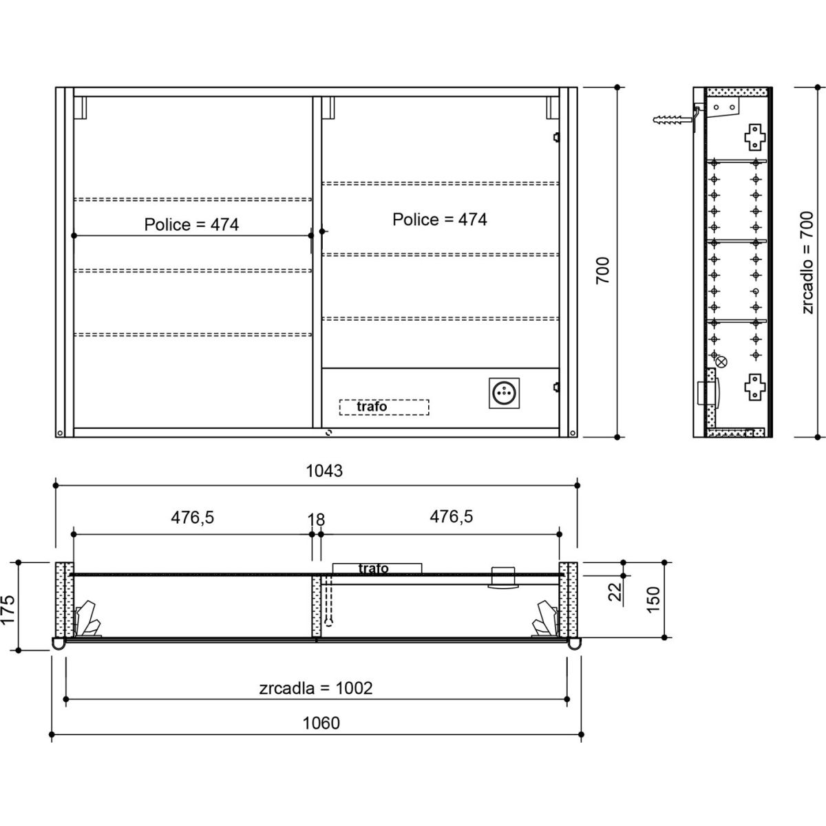 - oboustranná zrcadlová dvířka se samosvornými závěsy