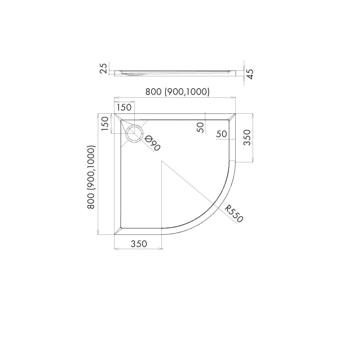 Schedline Sharper Black Stone půlkruhová sprchová vanička 80x80 cm černá 3S.S1O-8080/C/ST