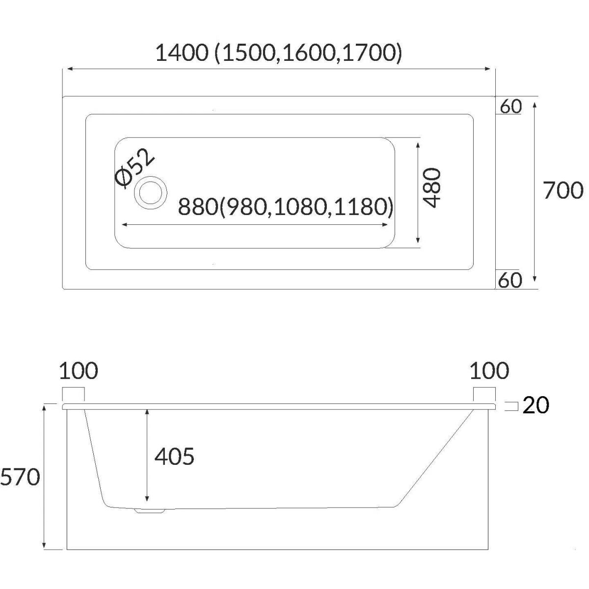 Schedpol Ferra Set vana se sifonem a nosičem 160x70 cm 3.532/NO-9.114