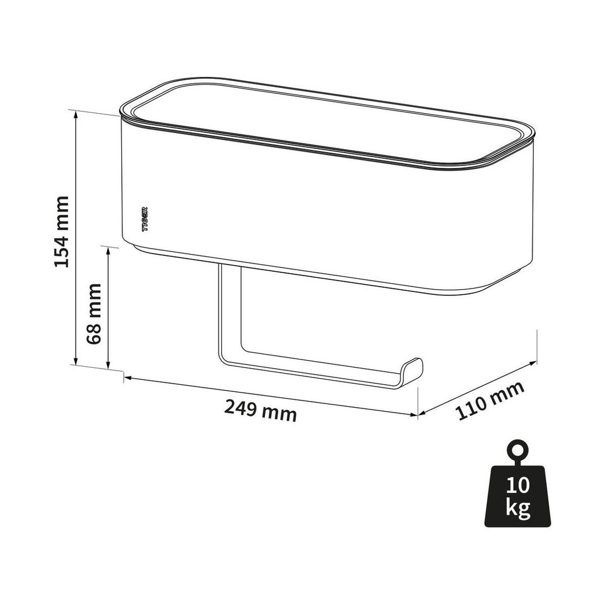 Elegantní a oblíbený 2-Store byl rozšířen o tento držák na toaletní papír, vybavený uzavíratelným úložným prostorem na vlhčené ubrousky. Se sérií 2-Store je vše organizované. Je to nejen hezké, ale i hygienické. Máte rádi trochu nonšalance? Pak si pořiďte tento držák v černé barvě.