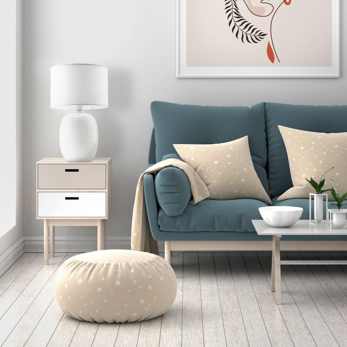- materiál: tkanina, sklo