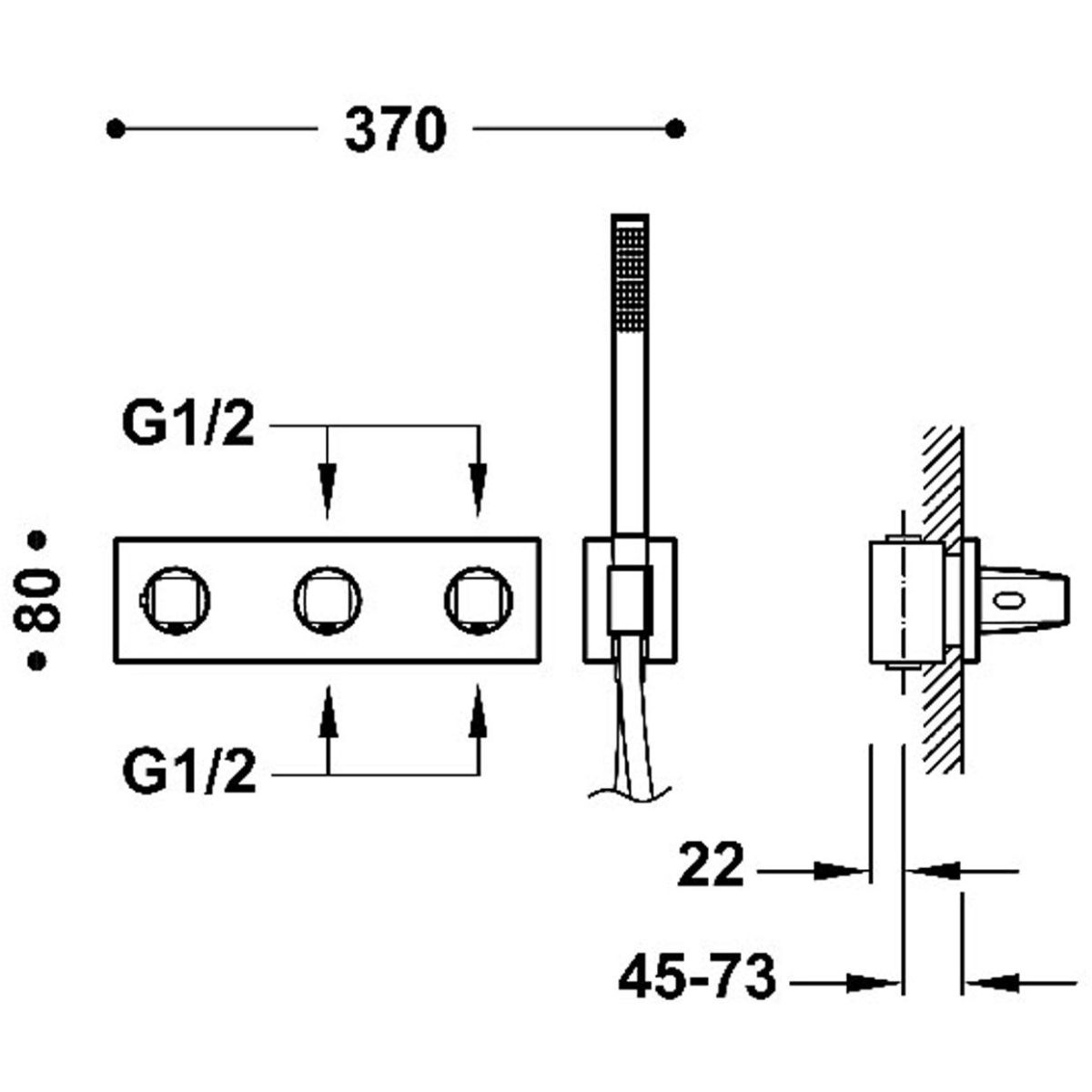 - termostatické skryté instalační těleso s horizontální instalací v ceně