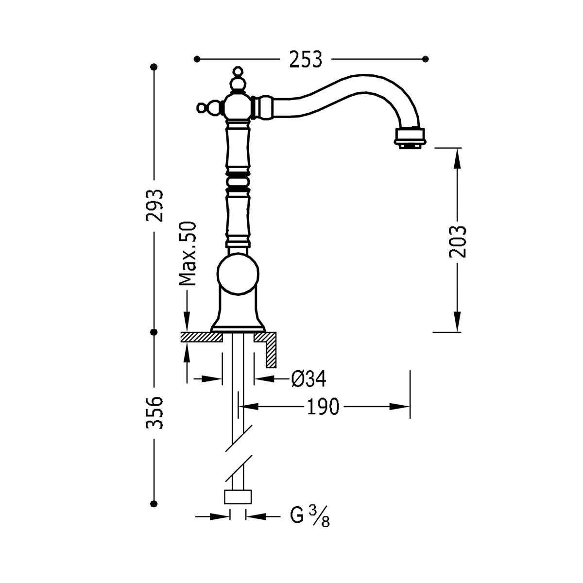 - úhel otáčení výtoku 360º